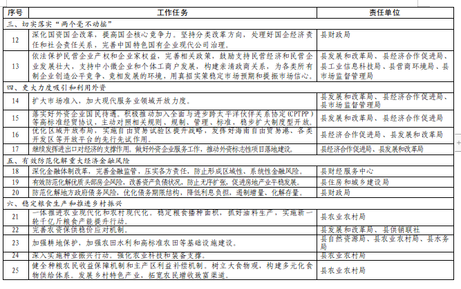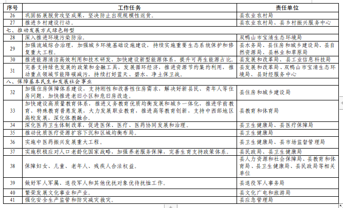 为全面落实十四届全国人大一次会议通过的《政府工作报告》确定的重点工作任务,努力推动我县经济社会发展,按照省、市政府要求,现将《国务院关于落实<政府工作报告>重点任务责任分工》印发给你们,请认真贯彻落实。