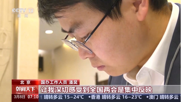 国办工作人员 陈科:他们提出的每一条建议都很鲜活,有深度有温度,凝结着民生关切。我们在这里旁听,原汁原味记录,坦诚沟通交流,是人民政府与代表委员沟通联系的直通车。