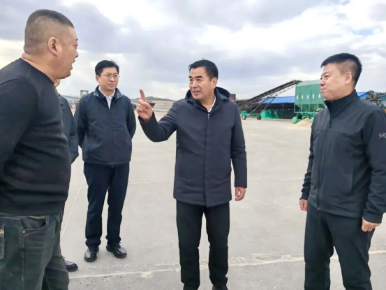 随后,徐斌义来到义和村玉顺粮贸公司,与企业负责人座谈交流,详细了解粮食烘干塔运行情况,并认真询问了粮食用途、销售去向、运输成本、补贴政策及今年丰收情况。他强调,要做好粮食收储、加工和流通环节的衔接,优化运输网络,降低物流成本,确保农民收益;要用好补贴政策,提升产业链韧性,为乡村振兴注入新动能。