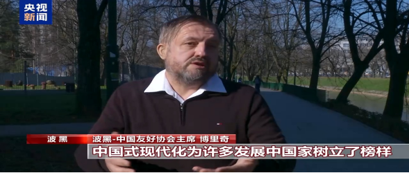 波黑—中国友好协会主席 博里奇:当今世界动荡不安,中国式现代化为许多发展中国家树立了榜样,超过8亿人摆脱贫困。这为非洲、亚洲的许多国家以及一些欧洲国家,比如我们,提供了可借鉴的样本和模式。