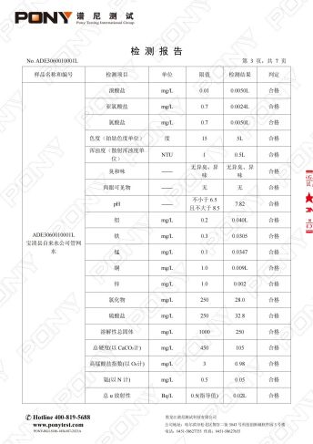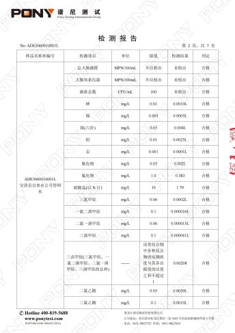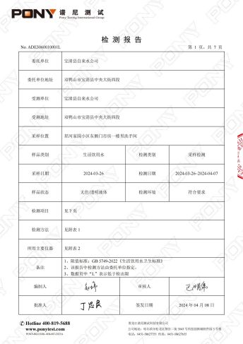 宝清县自来水公司第一季度管网水化验报告