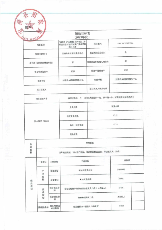 关于2023年度衔接推进乡村振兴项目资金绩效目标(第2次)的批复